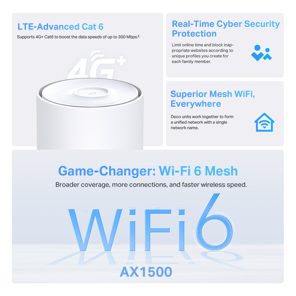 TP-Link Deco X10-4G(1-pack) 4G+ AX1500 Whole Home Mesh WiFi 6 Gateway