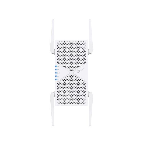 TP-Link RE405BE BE6500 Dual-Band Wi-Fi 7 Range Extender with BE6500 speeds, MLO, 160MHz, 4× antennas, EasyMesh, and 2.5G Ethernet port •Lightning-Fast 6.5 Gbps Dual-Band Wi-Fi 7: 5764 Mbps (5 GHz) + 688 Mbps (2.4 GHz).† •Multi-Link Operation (MLO): Increases throughput, reduces latency, and improves reliability for emerging applications.△ •2.5G Multi-Gigabit Ethernet Port: 1× 2.5 Gbps port ensures max flexibility and boosted throughput. •Smart Roaming: Walk from room to room and stay connected with the fastest possible speeds.§ •EasyMesh-Compatible: Works with EasyMesh routers and range extenders to form seamless whole home Mesh Wi-Fi, preventing drops and lag when moving between signals.* •Easy Setup: Plug in and then easily set up via a press of the WPS button or via the Tether App. •Great Compatibility: Works with all Wi-Fi generations and devices and all internet providers.*** Warranty Period: 3-Year