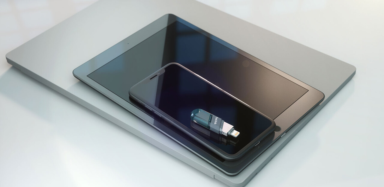 The iXpand Flash Drive Flip comes with not one but two connectors so you can easily move files between your iPhone, Mac, and USB Type-A PCs.