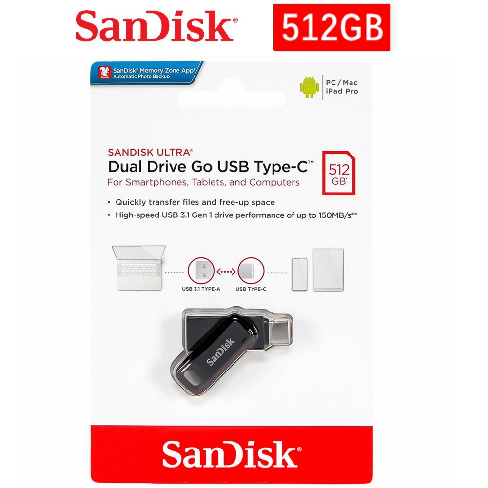 Type-C USB Drive SanDisk Ultra 512GB Dual Type-C GO USB Flash Drive Memory Stick PC MAC 150MB/s
