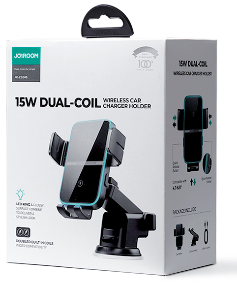 Wireless Car Charger Holder Joyroom Dual-Coil 15W Fast Charging Dashboard Mount
